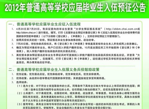 一、入伍预征公告 下载地址:http://zbbm.chsi.com.cn/help/yzgg.html
