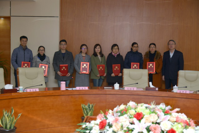 宦秀芳宣读了学校党委的聘任文件,党委书记孙培雷为8位新聘任组织员颁发聘书。