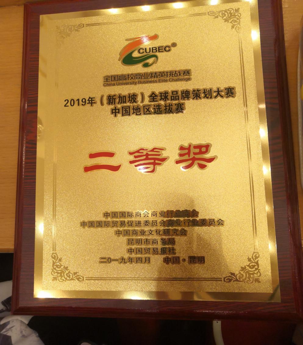 2019年(新加坡)全球品牌策划大赛——中国地区选拔赛于4月28日在云南昆明落下帷幕,由商学院赵楠老师指导,俞嘉铭、张莎莎、夏禹婷同学参与的“致一团队”代表学校首次参赛并且取得了二等奖的好成绩。