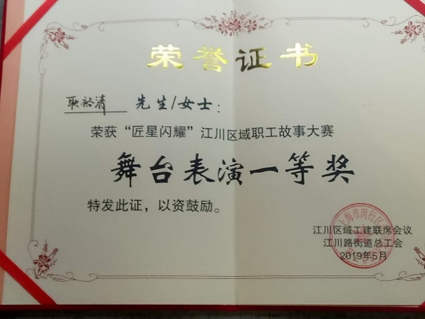 为深刻认识培育当代工匠、弘扬传承工匠精神,5月8日下午,由江川区域工建联席会议、江川路街道总工会举办的 “匠星闪耀”2019年江川区域职工故事大赛总决赛在江川路街道党建服务中心拉开帷幕。我校商学院青年教师耿裕清代表学校工会参与并获得一等奖。