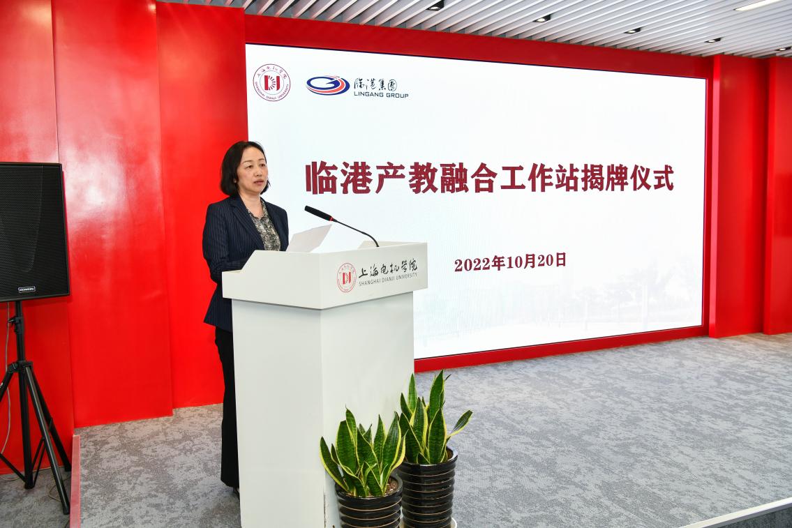 龚思怡院长对各方领导和嘉宾的莅临表示衷心感谢。她指出,临港集团是临港新片区建设的主力军,所经营的园区是国家产教融合试点核心区建设的主阵地,上海电机学院以建成以产教融合为特色的高水平应用技术型大学为目标,双方有着悠久的合作传统,共同的使命担当,互补的资源禀赋,相同的价值追求,临港产教融合工作站揭牌是新形势下学校与临港集团深化产教融合的重要里程碑。当前临港新片区正以习近平总书记“五个重要”战略定位为统领,全面贯彻落实国务院《中国(上海)自由贸易试验区临港新片区总体方案》,作为新片区高等院校,我校围绕服务国家战略,全面融入新片区,积极构建“小电机、大锻件、智能造、产教融”的新发展格局,通过深度产教融合,学校已形成“三双四共”校企协同育人模式,未来学校将以与临港集团共建临港产教融合工作站为新的契机,共同探索产教融合新模式,做实产教融合内涵建设,共同培养高水平产业人才,共建新型科技创新平台,推进科研成果的转化,积极实现学校知识溢出直接服务新片区经济社会发展,在加快国家产教融合试点核心区建设中贡献力量。
