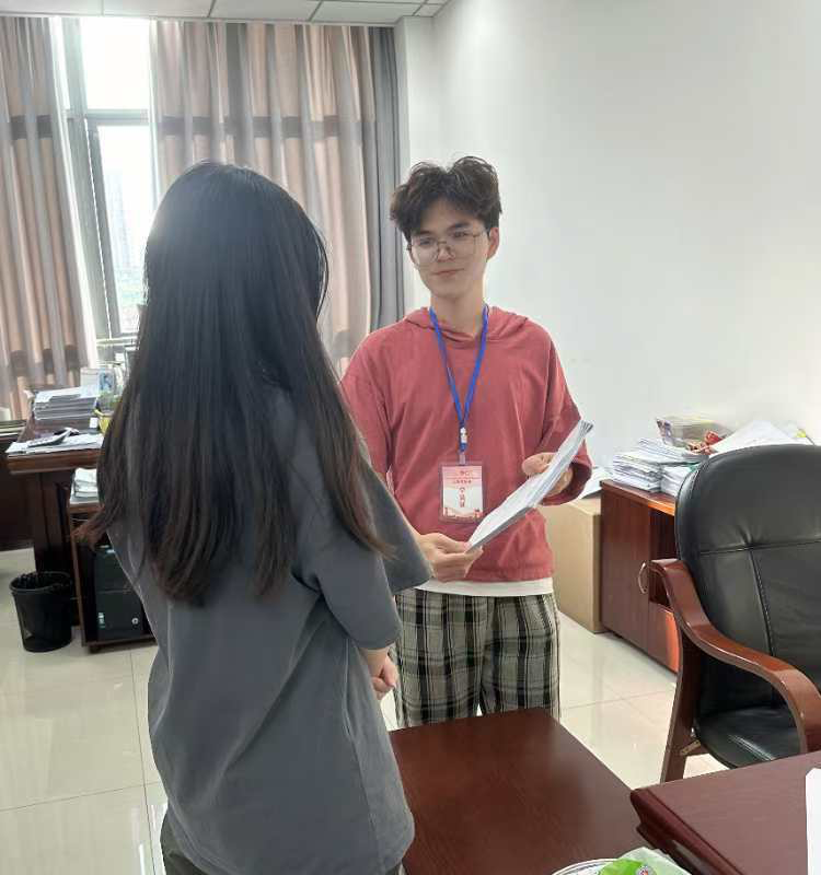 设计与艺术学院产设2211陶欣妍加入青浦区“扬帆来青”大学生社会实践活动,在夏阳街道的华骥苑居委会挂职锻炼。作为一名退伍军人,她怀揣着服务大众的心投入工作,争取从校园之外的人、事、物中增长见识。她耐心细致地帮助居民答疑解惑,理性公平地解决居民纠纷。作为电机学子,她将自己良好的精神风貌展现到群众中去,谱写属于自己的时代华章。