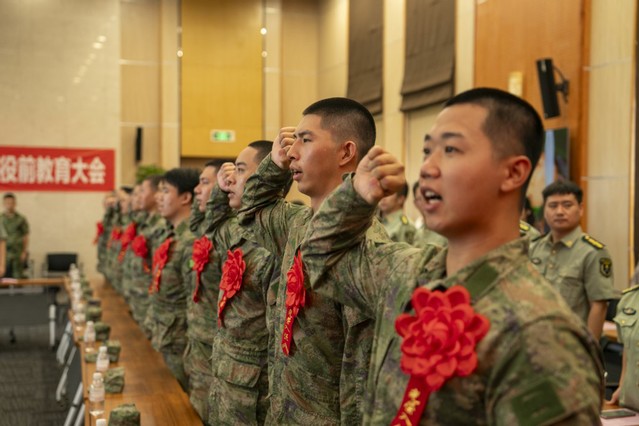 全体预定新兵在退役士兵学生代表、电气学院卫乾龙同学的带领下进行了庄严的入伍宣誓。宣誓仪式上,新兵们的声音坚定而有力,表达了他们对国防事业的忠诚和对军人职责的坚定承诺。