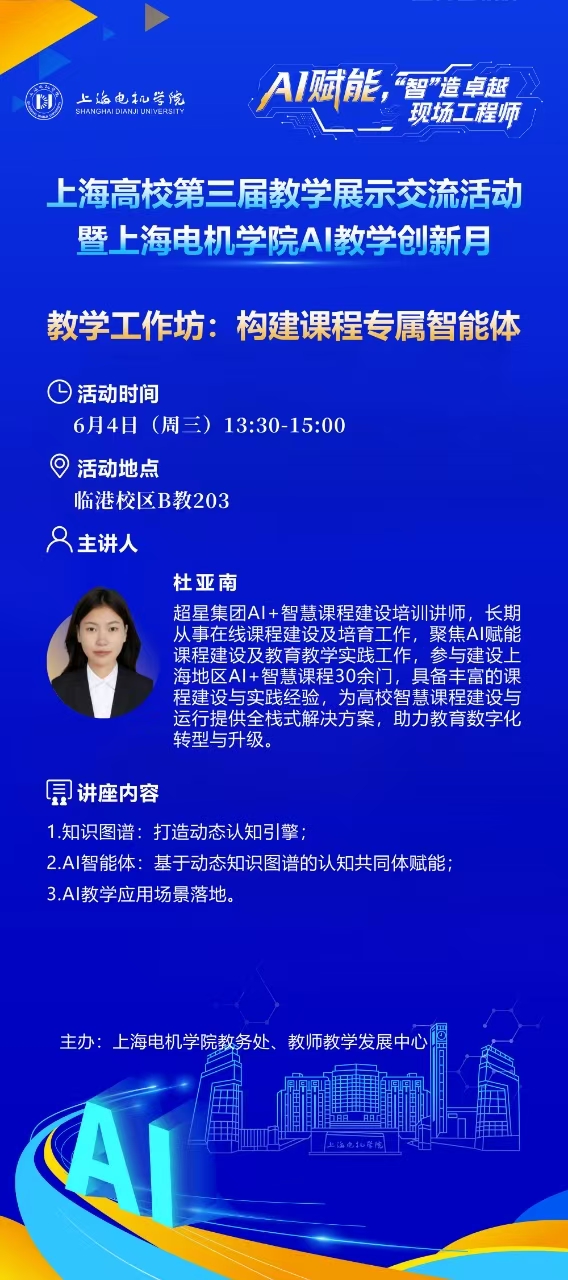 杜亚南,超星集团AI+智慧课程建设培训讲师,长期从事在线课程建设及培育工作,聚焦AI赋能课程建设及教育教学实践工作,参与建设上海地区AI+智慧课程30余门,具备丰富的课程建设与实践经验,为高校智慧课程建设与运行提供全栈式解决方案,助力教育数字化转型与升级。