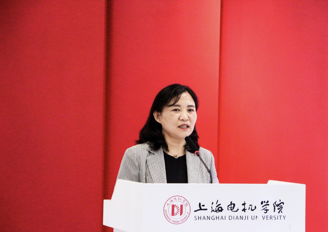 董健教授在发言中回顾了上海戏剧学院与上海电机学院在美育育人方面的长期合作,表示双方联动不仅为两校学子提供了多样的学习与实践平台,更打破了专业壁垒,实现了“艺术审美”与“科技素养”的跨界融合,在协同育人领域探索出一条特色路径。她还从艺术传承角度分享了对经典诵读的见解,鼓励学子以声为媒,读懂经典、传播经典。