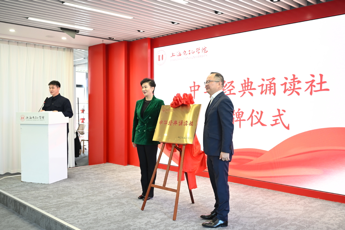 10月24日,上海电机学院中华经典诵读社成立仪式在临港校区行政楼230 室举行。校党委副书记朱洪春,1989级校友、上海埃索威热能技术有限公司总经理徐立东,中国播音主持“金话筒”奖获得者、上海戏剧学院“播音与主持艺术”国家级一流本科专业建设点负责人、博士生导师董健,中央广播电视总台原新闻主播、上海戏剧学院播音与主持系专任教师李泽鹏等嘉宾出席仪式,与学校师生代表共同见证这一文化盛事。本次开幕仪式由学校校友会、教育发展基金会主办,商学院承办,围绕“传承经典,声动电机”的主题,多方协同探索工科院校人文美育素养与科学技术精神交相辉映的育人新路径,以“文艺范”赋能“工程魂”,为师生搭建起一座与中华优秀传统文化对话的桥梁。