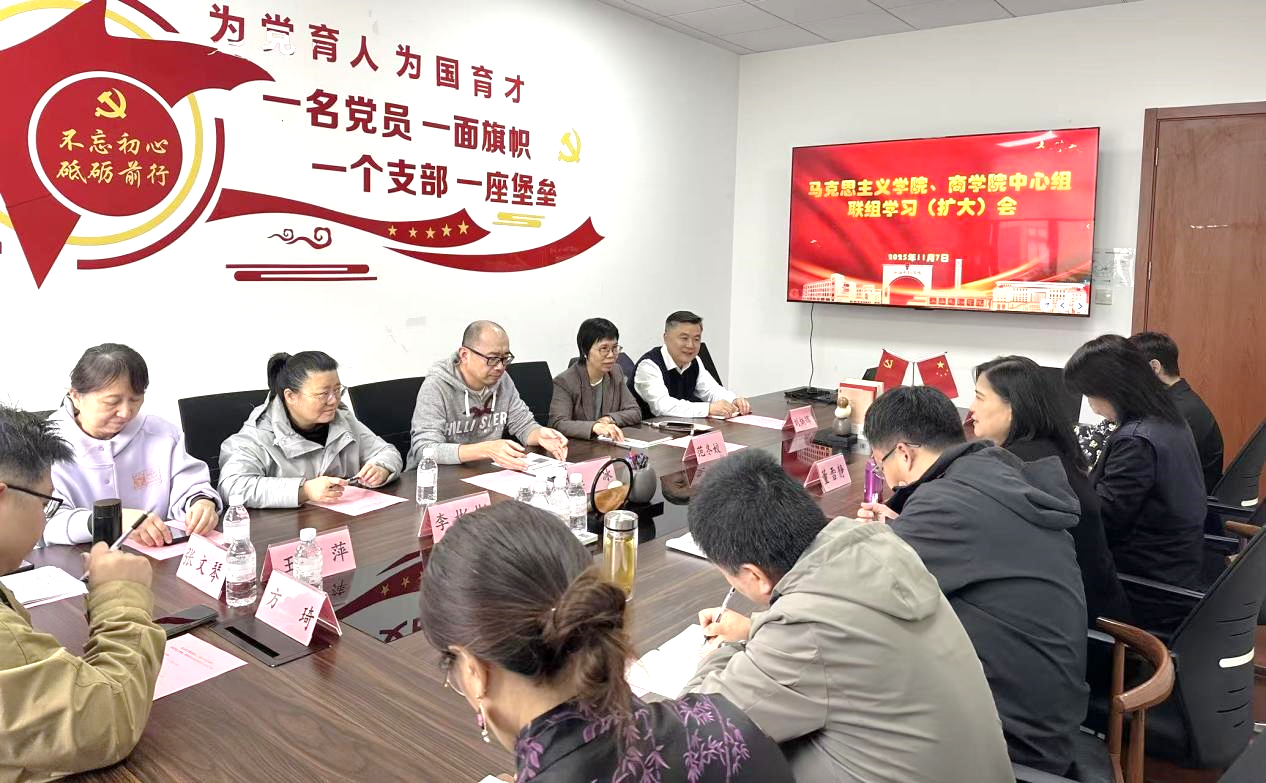 近日,马克思主义学院党总支、商学院党委在商院楼435会议室开展中心组联组学习(扩大)会,深入学习贯彻党的二十届四中全会精神。马克思主义学院、商学院理论学习中心组成员,两学院部分党员教师代表参会。会议由马克思主义学院党总支书记范冬姣主持。