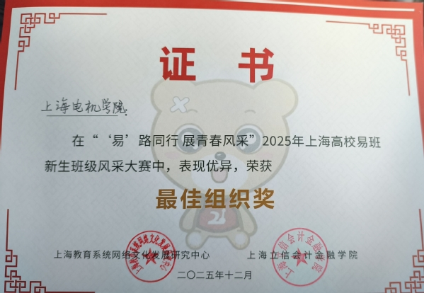 冬日暖阳,青春飞扬。12月6日,由市教卫工作党委、市教委指导,上海市教育系统网络文化发展研究中心与易班网联合主办的“‘易’路同行,展青春风采”2025年上海高校易班新生班级风采大赛决赛,在上海立信会计金融学院昭信堂举行。我校经济学类2516班凭借出色表现,荣获“杰出风采班级”称号,学校获评“最佳组织奖”。