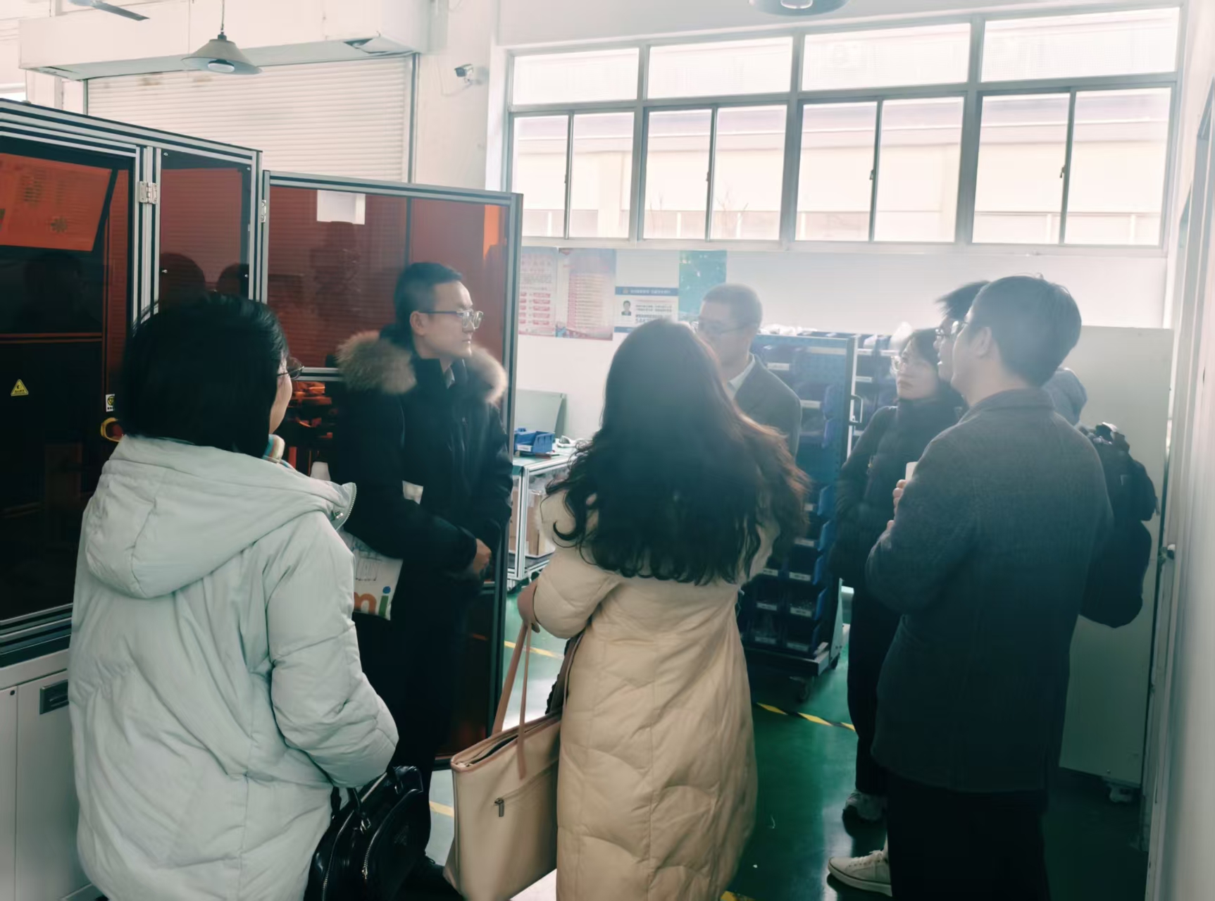 在光之人企业调研结束后,学院一行继续来到镐晟自动化科技(上海)有限公司调研。镐晟自动化是一家致力于服务汽车电子和半导体先进制造行业,基于半导体IGBT、SiC行业多年积累的专业技术,制造高速插针、真空灌胶、合板、外壳组装等行业领先的设备,企业创始人盛春军是我校96级校友。黎明院长详细了解了复合搬运机器人、点样检测机的技术细节及在“AI+制造”领域的应用情况,并就企业与学院潜在学科科研合作展开交流与探讨。盛总介绍了公司在非标定制、半导体与汽车电子相关设备研发、集成应用等核心领域的优势,同时梳理了当前发展中面临的问题,并对后续校企合作进行了展望。