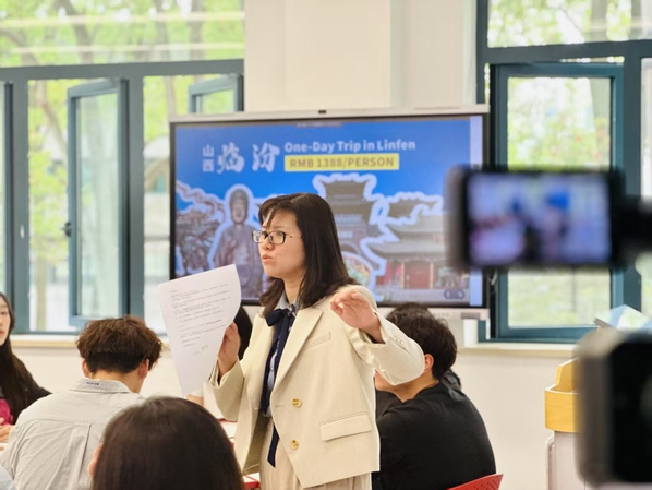 李争老师主讲的“大学英语(1)”课程中的一堂课“China Travel,China Fun”,以“产出导向法”为理论基础,以抖音直播推介“大美中国:中国城市一日游”旅游产品为单元产出任务,驱动学生进行内容语言整合性学习;并把产出任务拆解为迷你问卷、一日游海报设计、一日游产品推广方案等系列子任务,促成学生层层递进夯实语言技能,帮助学生掌握经济词汇,提升专业表达与职业素养,实现语通专业。在“大学英语(1)”课程中,李争老师注重以语言激活学科交叉,融文化彰显中国自信,促进学生进行内容 语言整合性学习,培养能思辨、有立场、懂世界、敢发声的应用型人才。