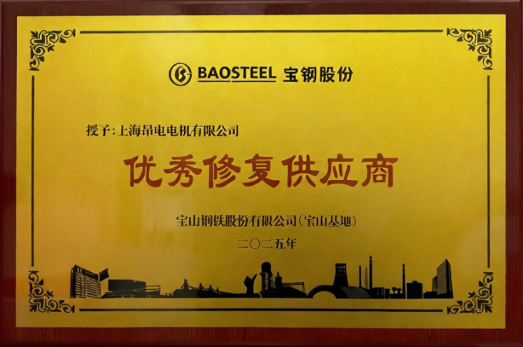 宝山钢铁股份有限公司作为钢铁行业的标杆企业,对供应链合作伙伴的技术水平、服务响应与质量管控有着严苛的标准。此次评选历经多维度考核,涵盖维修工艺精度、故障解决效率、应急服务能力、售后运维保障等核心指标,昂电公司在众多供应商中脱颖而出,成功斩获此项荣誉,彰显了企业在电机维修领域的综合竞争力。